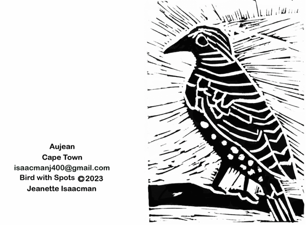 Once I had a small body of work, I decided to print the linocut images onto blank greeting cards and sell them to local Cape Town art and craft shops. The cards have been favourably received. And now I have a website.